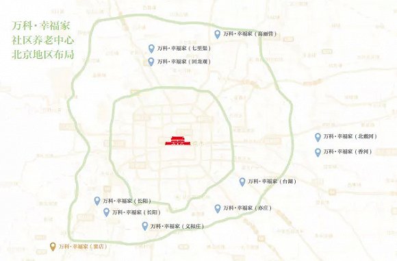 同年10月,万科召开养老品牌发布会,宣布万科在北京区域的首个自持养老项目——万科 幸福家社区养老中心正式对外开放,并公布了万科在北京区域(北京、香河、秦皇岛)第一阶段的养老战略布局:10个项目+90000㎡+3000床位。
