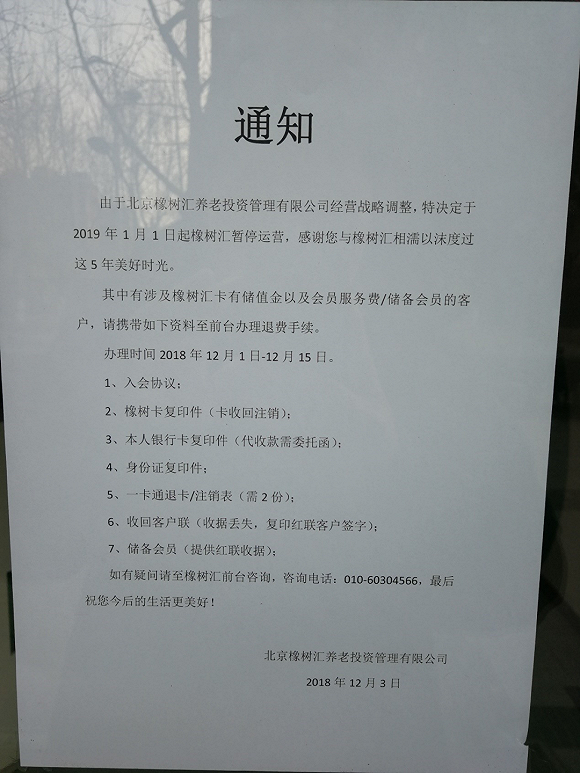 2018年12月3日,万科·橡树汇的大门上正式贴出“停业通知”,也意味着北京万科基于物业+养老的尝试将告别历史舞台,当倒计时的钟声一点点临近,我们不禁要想:社区居家养老到底该走向何方?物业+养老是否如看上去那般美好?