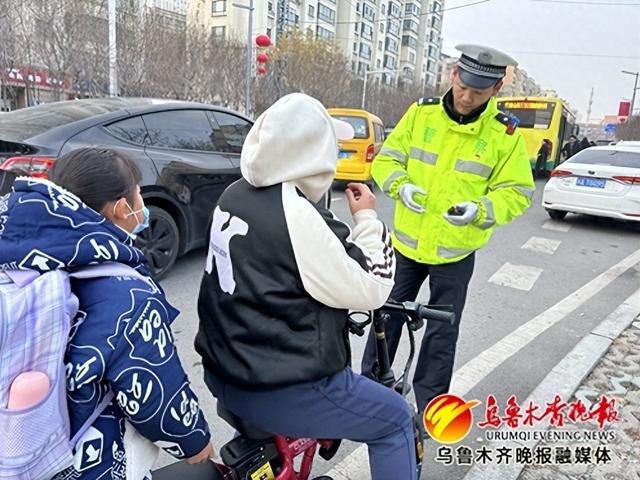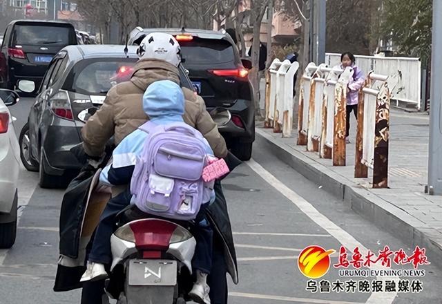 正在该路段执勤的天山区交警大队东环路中队民警马旭询问几名家长,为何违规载人且孩子都没戴头盔时,几名家长都显得有些茫然,几人均表示不知道电动自行车不能载12岁以下孩子,一位妈妈赶紧说,“我女儿12岁了,以后给她买个头盔。”另一位父亲则称“给孩子买了头盔,他说太沉了,戴上不舒服。”