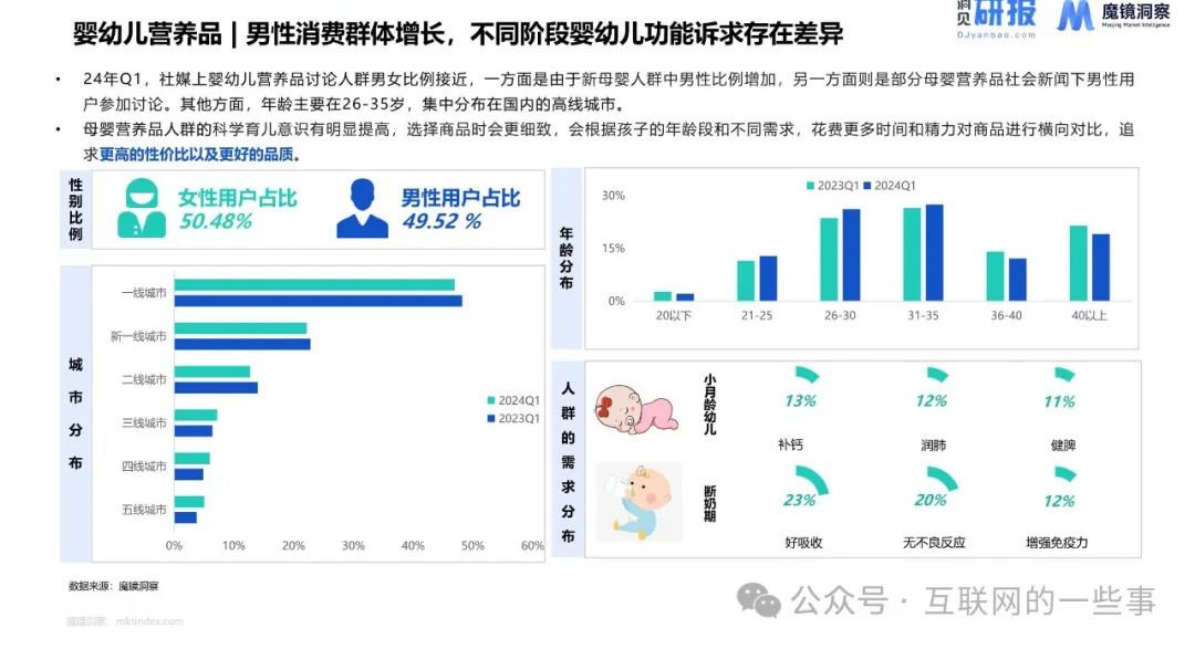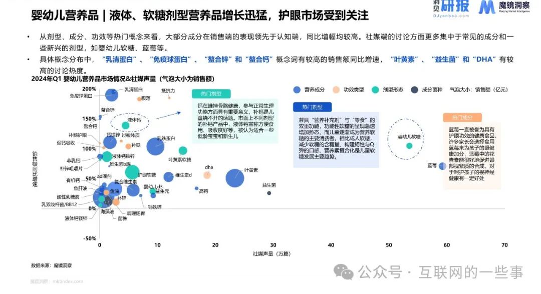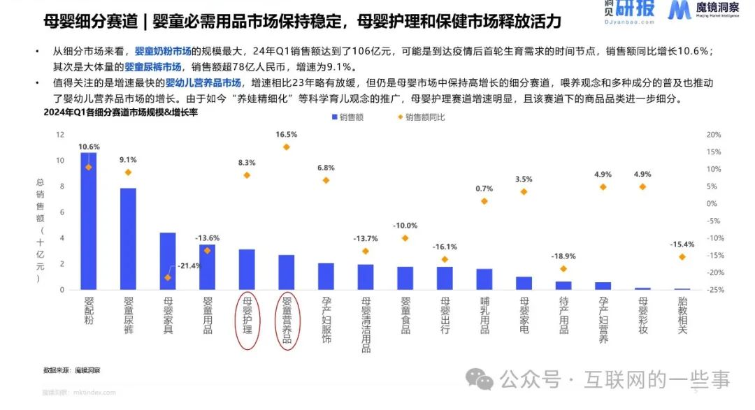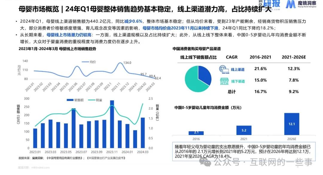 婴童奶粉和尿裤市场规模庞大且保持稳定增长,而婴幼儿营养品市场增速虽有放缓,但依然是高增长细分市场。消费者对营养品的认知增强,倾向于线上了解和购买,特别是关注产品成分和功效。