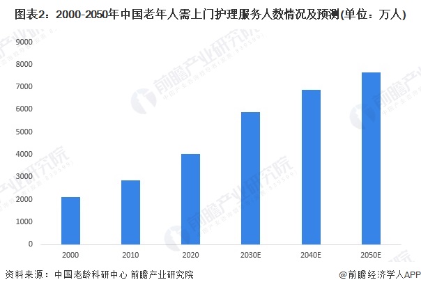 根据中国老龄科研中心承担的科技部国家软科学研究计划项目“促进老龄产业发展的机制和政策研究总报告”分析,家政服务138254040952000-2050年中国老年人需要上门护理服务的人数将不断上升,2020年约为4033.3万人,2030年预计达到5896.9万人,到2050年达到7600万人左右。