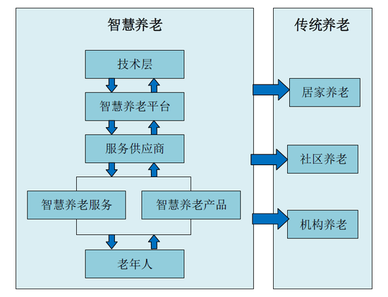 传统的养老模式,无论是居家养老、社区养老还是机构养老,都以人工养老服务为主。智慧养老是新的理念和技术手段在养老领域的运用,它既依托于传统养老服务体系,又是对传统养老服务体系的升级和创新,弥补了养老服务中人力资源严重不足的缺陷。可以说,智慧养老体现了养老服务由人工化向智能化、自动化的转变。与传统养老模式相比,智慧养老具有大数据收集存储、资源整合、人力替代等优势。