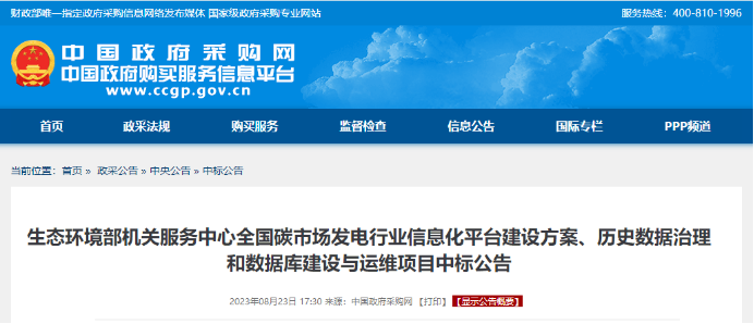 近日,中国政府采购网消息,全国碳市场发电行业信息化平台已完成中标,将于2023年11月30日完成建设。平台将面向部委领导、主管部门、核查机构、全国重点控排单位、检测机构、交易机构和社会公众等用户,推动全国碳市场管理业务工作数字化、智能化、体系化,对进一步提升全国碳排放数据质量,支撑全国碳市场健康有序地发展,推进我国“双碳”目标实现具有重要而深远的意义。